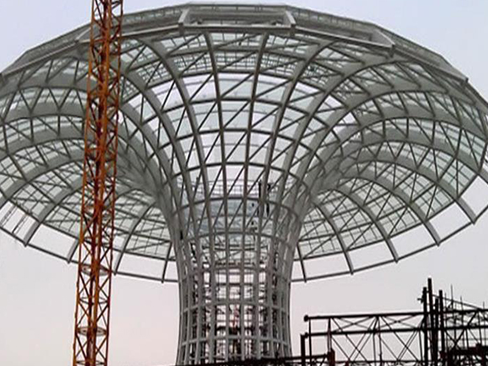 二、球形网架结构因其结构新颖,受力合理,自重轻、用钢量低等优点。如大型体育场馆球形安阳螺栓球网架、公共场馆球形网架、电厂安阳螺栓球网架、水泥工业球形网架、仓储物流球形网架、安阳干煤棚工业球形网架、安阳收费站安阳加油站球形网架、展览中心、影剧院、商场、航站楼、候车厅、工厂安阳车间、仓库、电视塔等球形螺栓球节点网架。国内球形网架结构主要分为:安阳焊接球节点网架及螺栓球节点网架两种。螺栓球节点网架其构件工厂内加工量较大,现场安装便捷,适用于现场工期紧,安阳施工条件、用电量受制约,网架形状复杂、安阳杆件定位困难的异形结构。螺栓球节点球形网架系统基本由安阳杆件、螺栓球、支撑支座等组成。按照节点形式可分为交叉安阳桁架体系、四角锥体系、三角锥体系等。支撑方式多为固定支座支撑。对于大面积、大跨度及有特殊受力或伸缩要求的网架结构可采用橡胶支座、滑移支座、球铰支座等支撑形式,以满足结构自身的受力稳定、均衡,便于内力释放等设计要求。